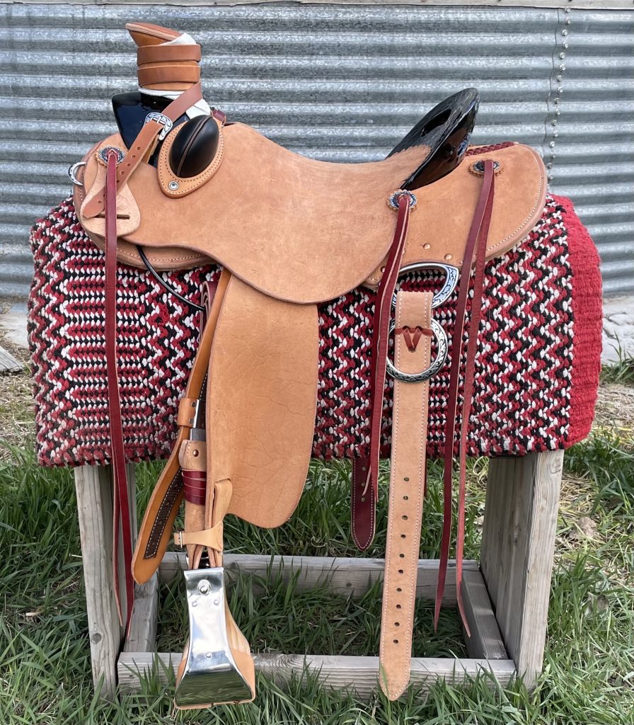 Custom saddles by Matt Cazier are built by hand from the ground up, starting with a handmade tree built by Randy Alexander or Joe Bramwell, that fits the rider’s type of horse, and the best leather money can buy. Clients can customize every aspect of their saddle from tooling to the shape of the ground seat. All saddles are crafted with the comfort of the horse and rider in mind. Our saddles are built with such balance you will be able to put in a full day’s work whether it be on the range or in the arena.